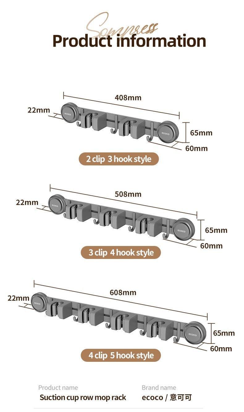 Introducing the ECOCO High Suction Cup Mop Holder – your ultimate solution for keeping your mops and cleaning equipment neatly organized and easily accessible! Say goodbye to cluttered spaces and hello to a tidy and efficient home.