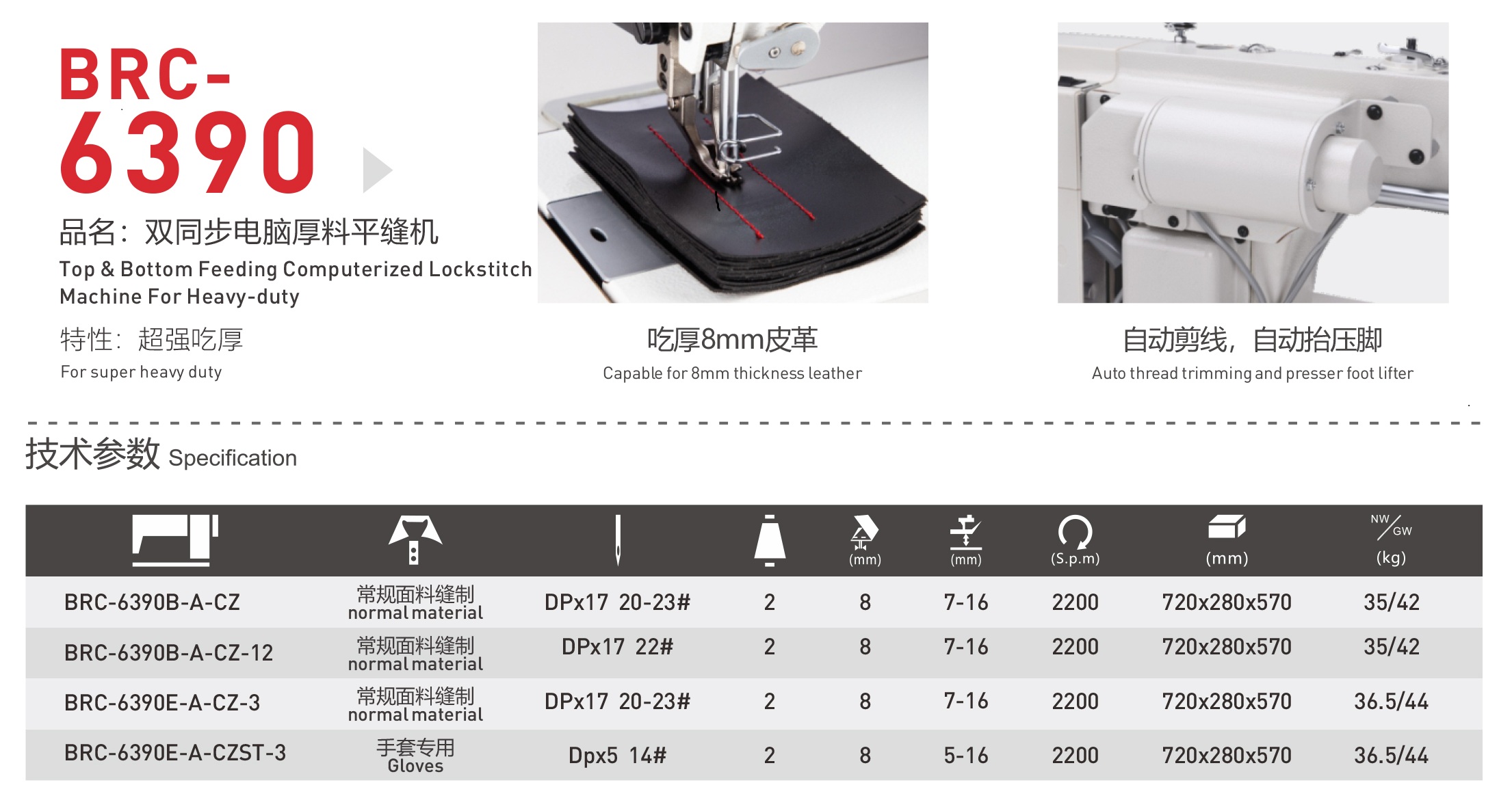 BRUCE/BRC-6390E-A-CZ-3 : Dengan Pemotong Benang Automatik, Tiang Ketegangan Elektronik, Suapan Tapak Penekan dan Pelinciran Automatik (Set Lengkap)