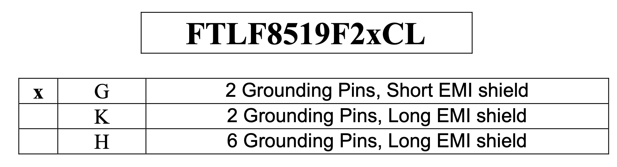 Coherent Finisar FTLF8519F2GCL FTLF8519F2GNL FTLF8519F2GTL FTLF8519F2HCL FTLF8519F2HNL FTLF8519F2HTL FTLF8519F2KCL FTLF8519F2KNL FTLF8519F2KTL FTLF8519F2MNL FTLF8519F2MTL
