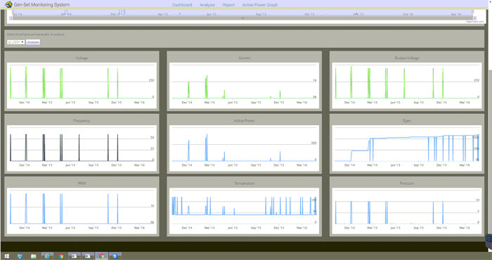 Generators may be individually traced on their performance. Key parameters such as 3 phase ampere, busbar & line voltages, PF, frequency, oil pressure, radiator temperature are tracked with recording for off-site retrieval analysis if necessary.