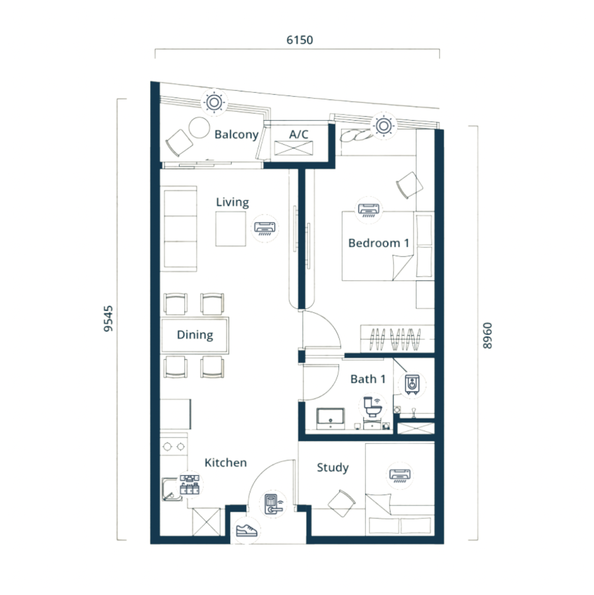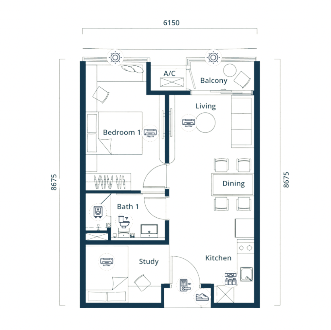 | Unit Types | A1 — 1+1 Bed 1 Bath — 608 sq.ft. |