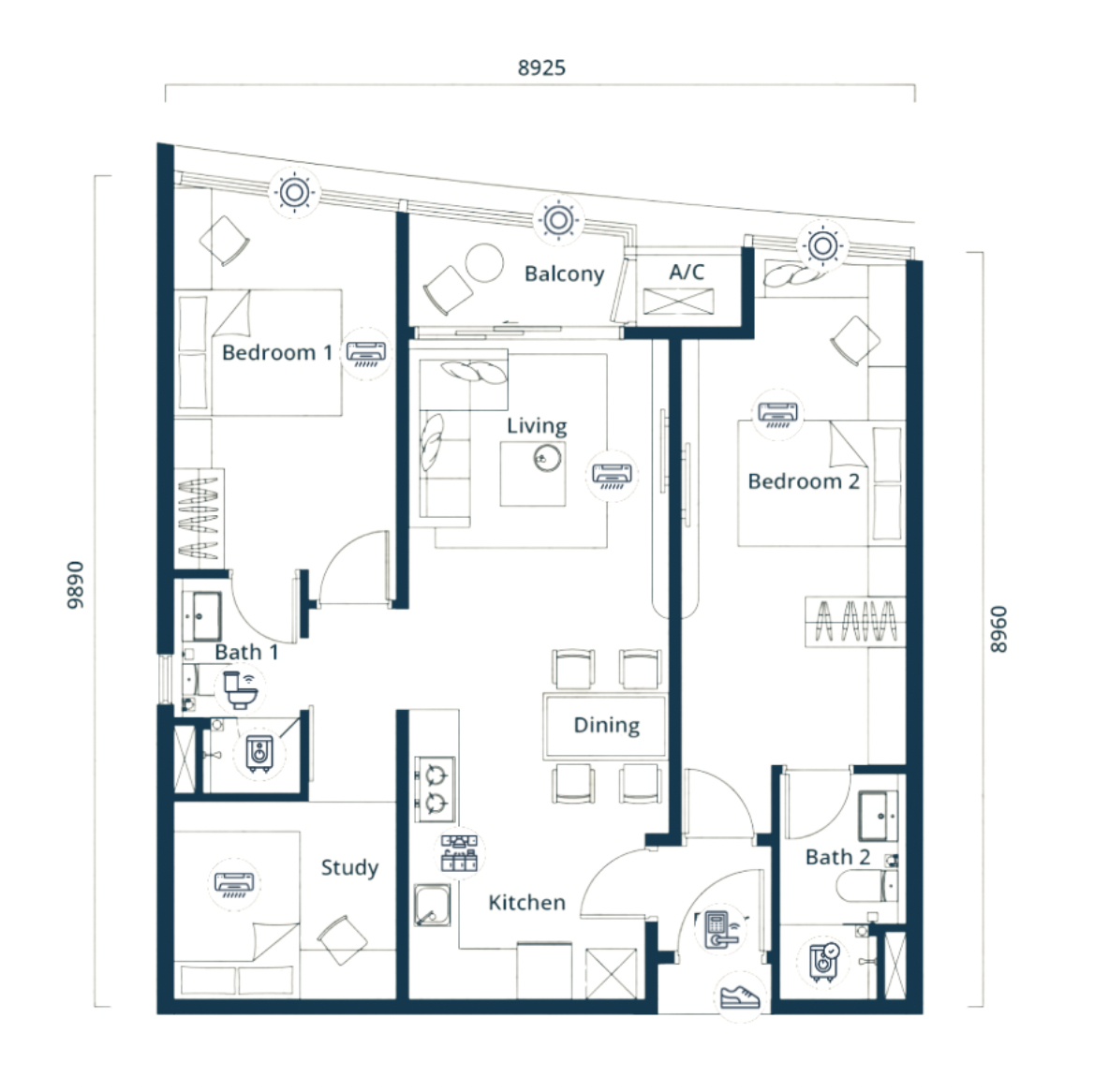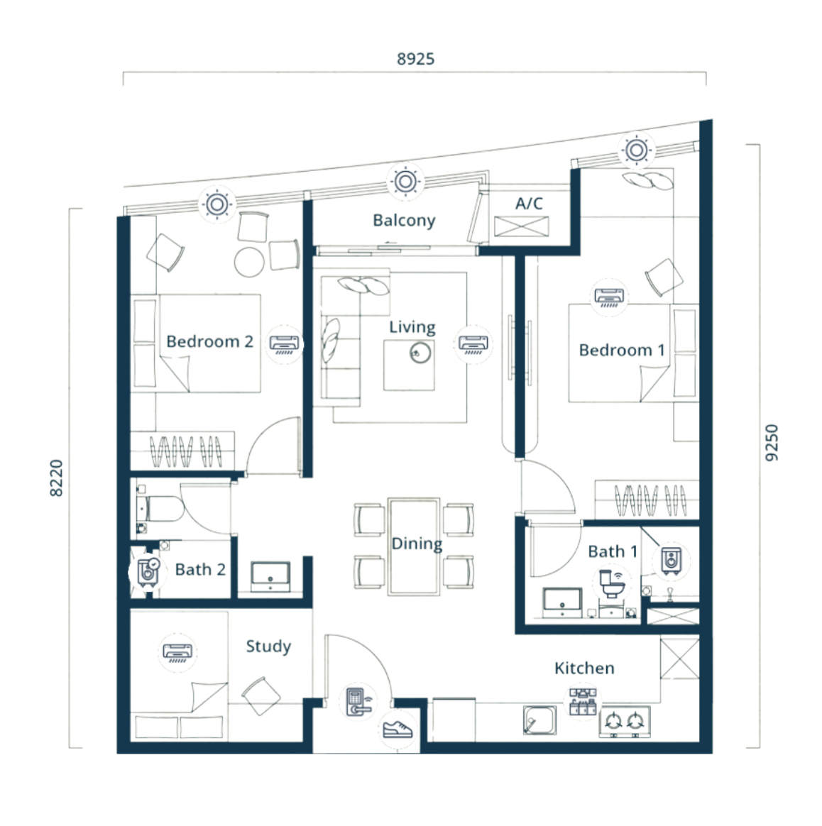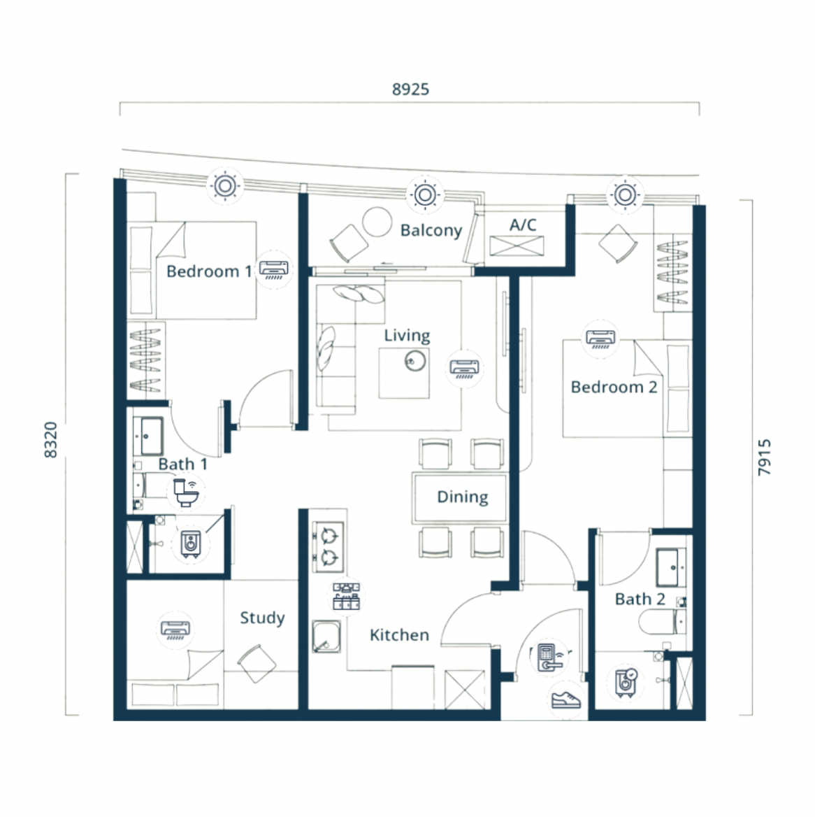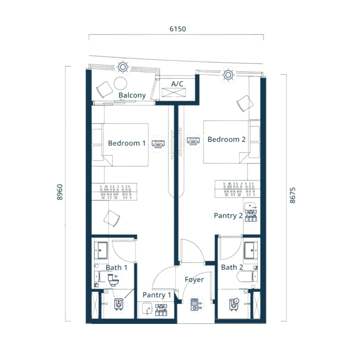 | A2 — 2 Bed 2 Bath — 579 sq.ft. | |