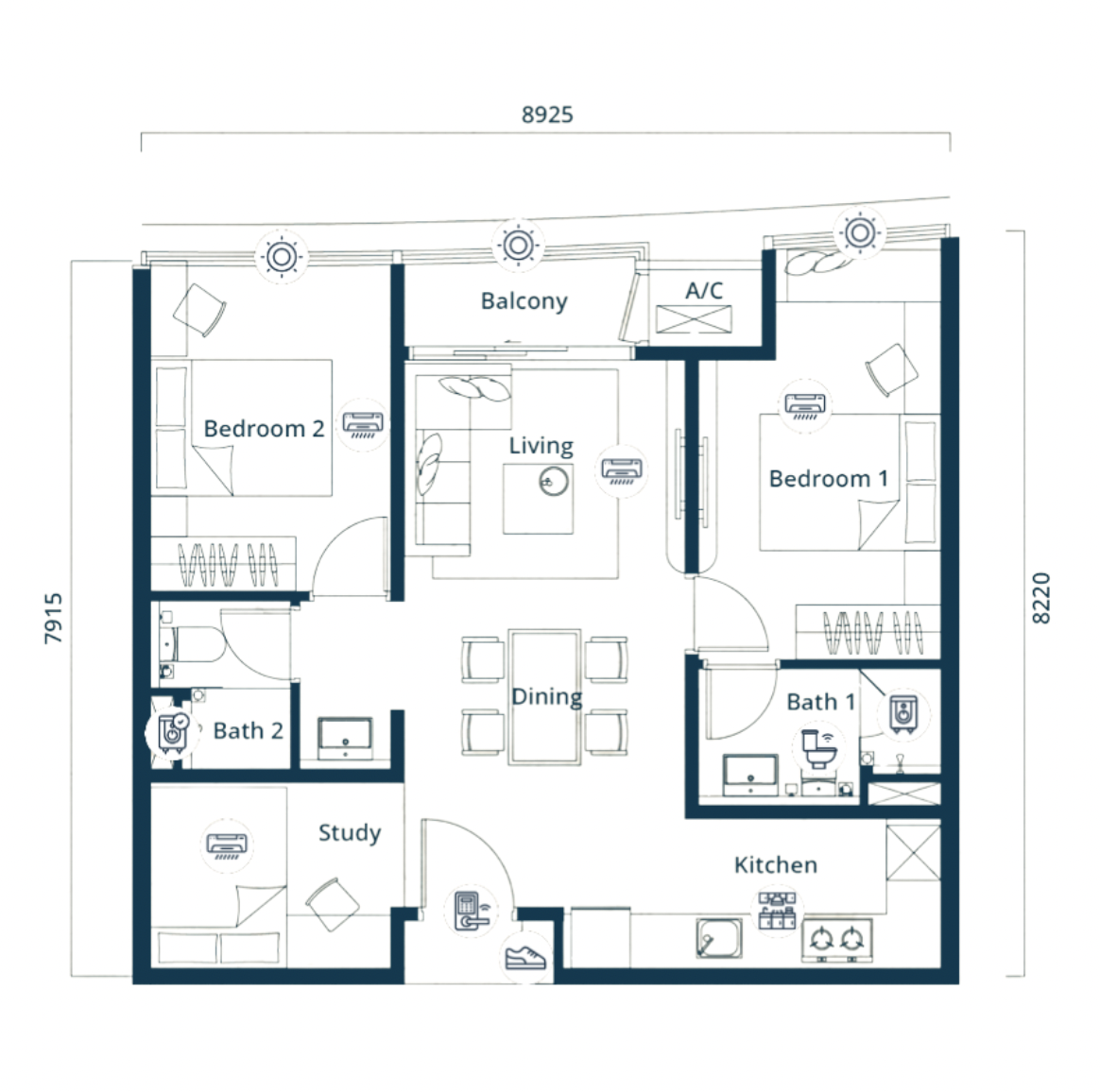 | B4 — 2+1 Bed 2 Bath— 897 sq.ft. | |