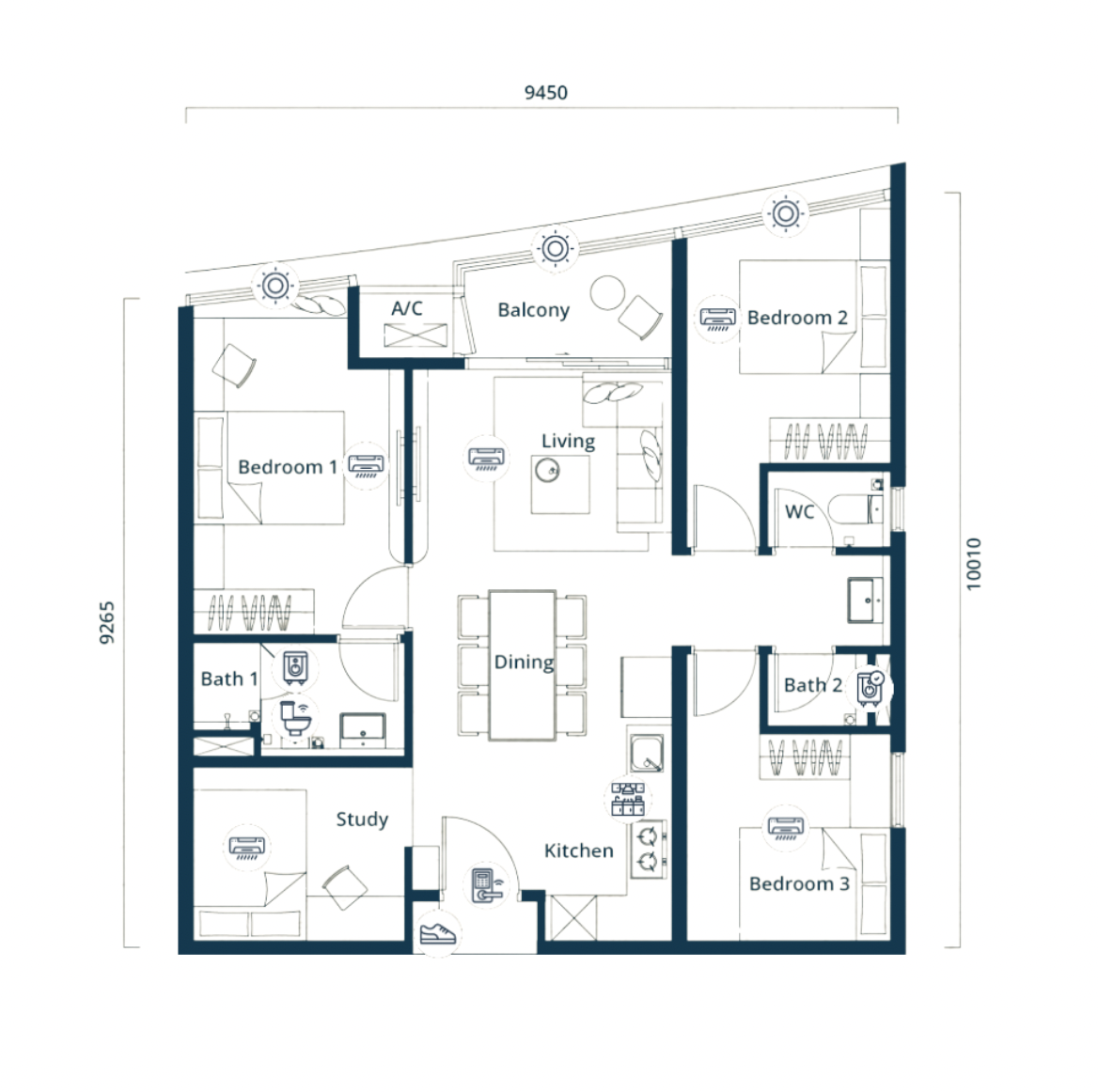 | C1 — 3+1 Bed 2 Bath — 1,161 sq.ft. |