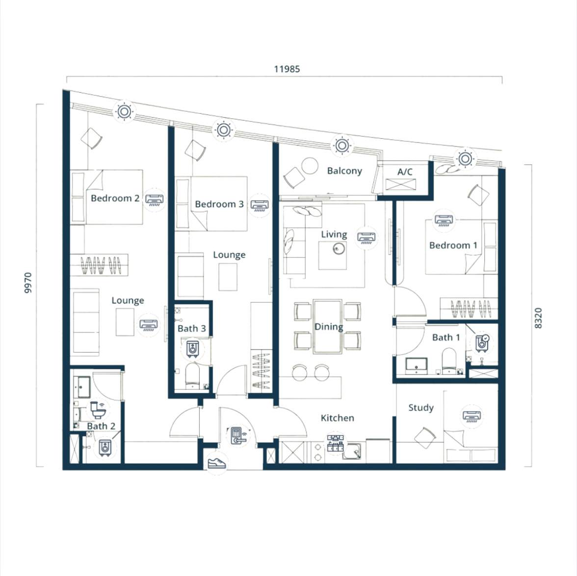 | A3 — 1+1 Bed 1 Bath — 570 sq.ft. | |