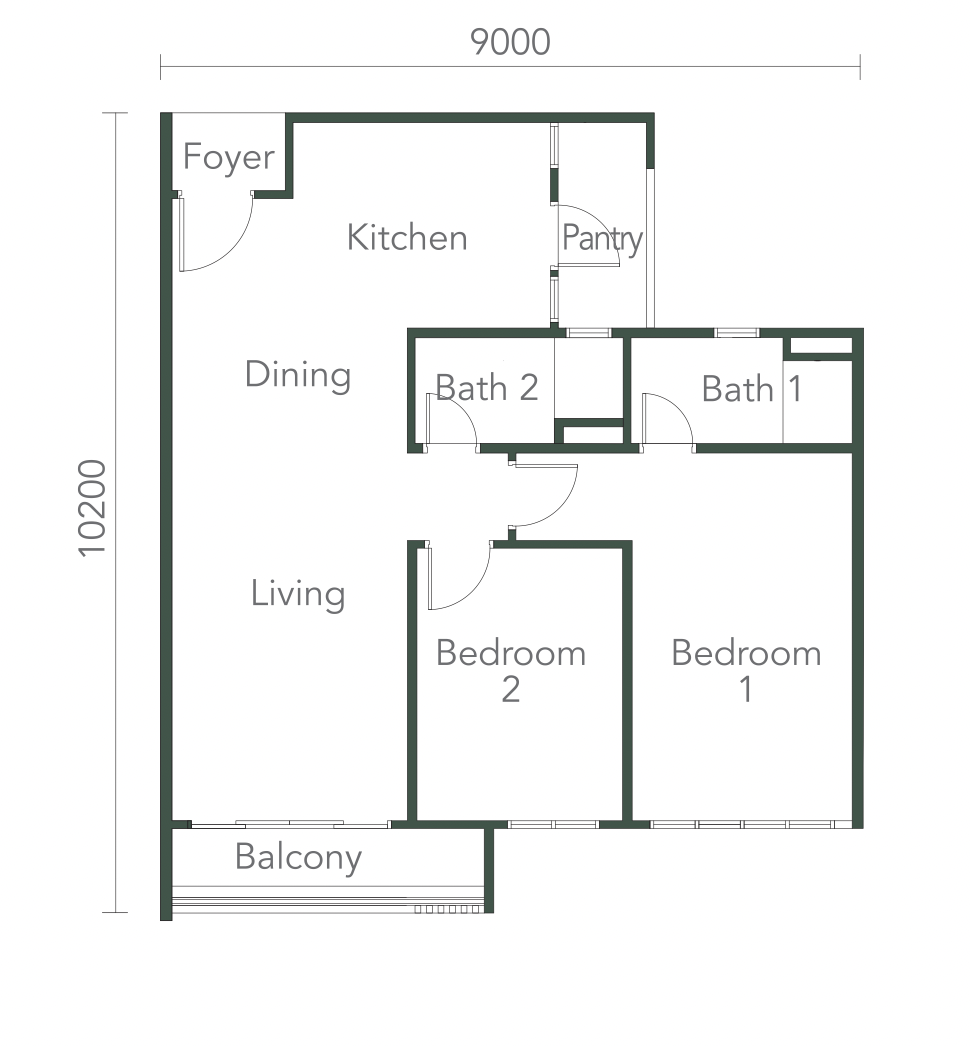 | Type B — 2 Bedroom + 2 Bathroom — 854 sq.ft. | |