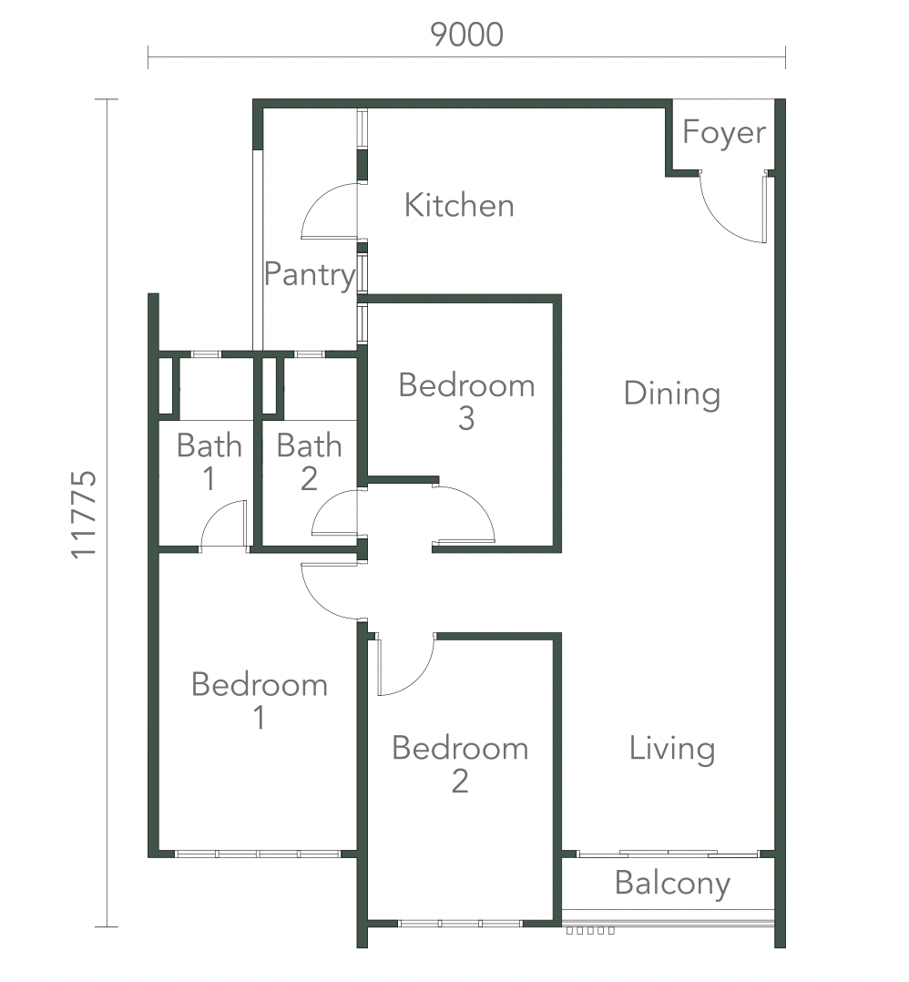 | Type C — 3 Bedroom + 2 Bathroom — 1,050 sq.ft. |