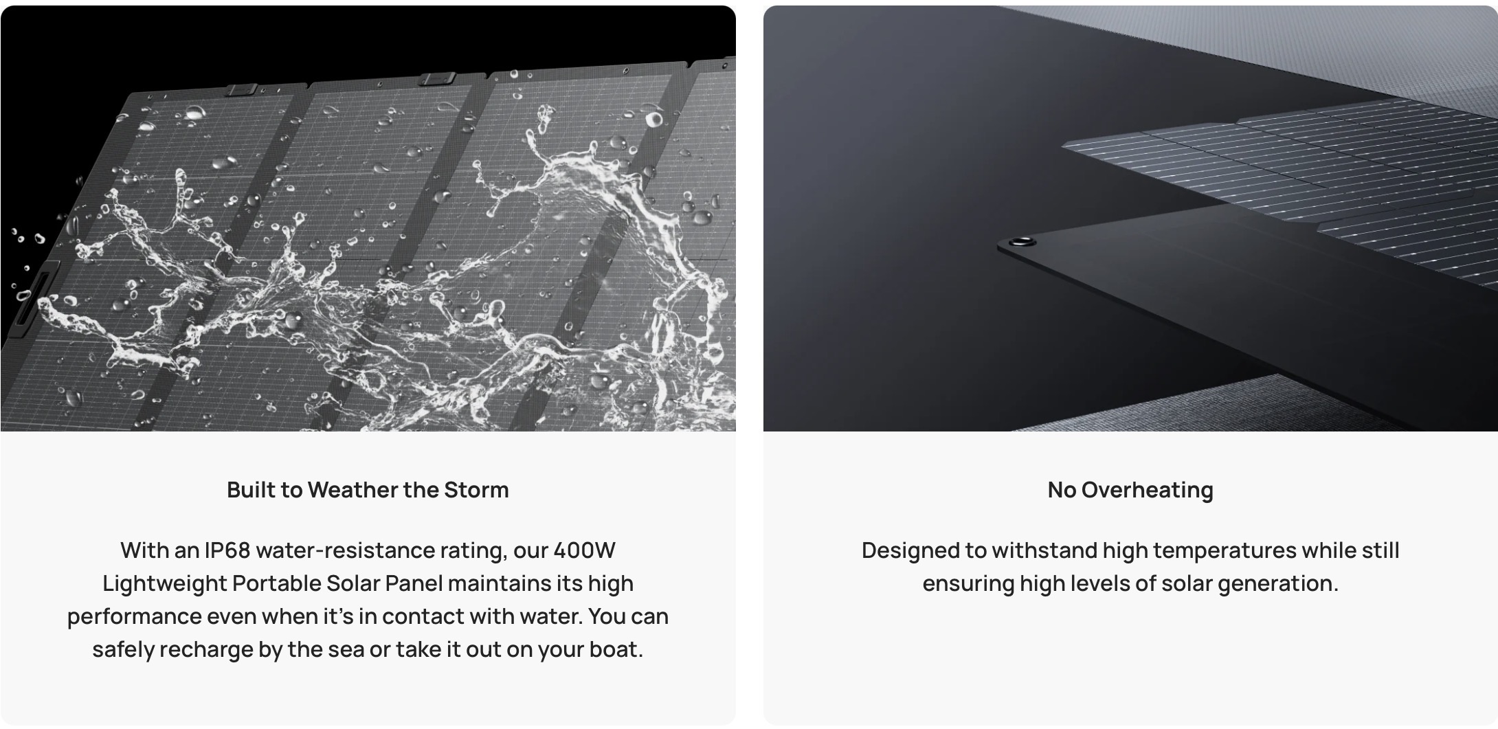 Engineered with advanced lightweight materials, this next-gen solar panel is 5.8 kg lighter than previous models for effortless transport and compact storage.