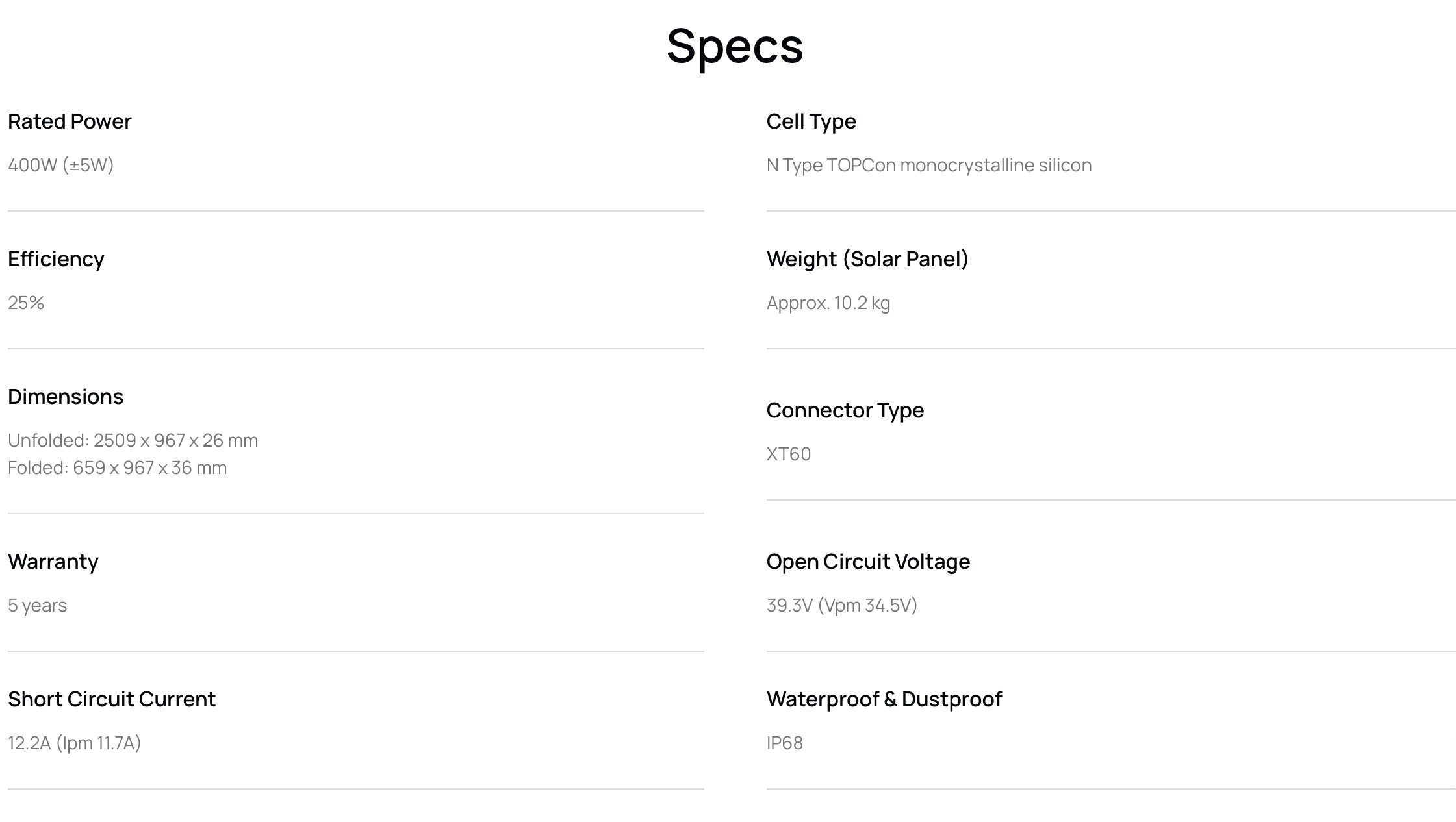 With primary and rear-side panels for ambient light, output power reaches up to 445W under BNPI test conditions, generating more power from the same amount of sunlight compared to traditional monofacial panels. With industry-leading TOPCon solar technology, the portable solar panel achieves a top-level conversion rate of up to 25%, recharging your power station even faster.