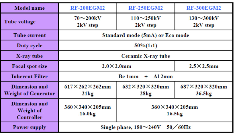 • Easy-to-handle, reliable radiography –An automatic aging function is designed into this new series to enable the required aging time set up automatically. This automatic control will prevent improper operation in the event of over load or insufficient aging time. The tube voltage now can be adjusted in 2KV steps, it help the radiography operation to perform more precisely.