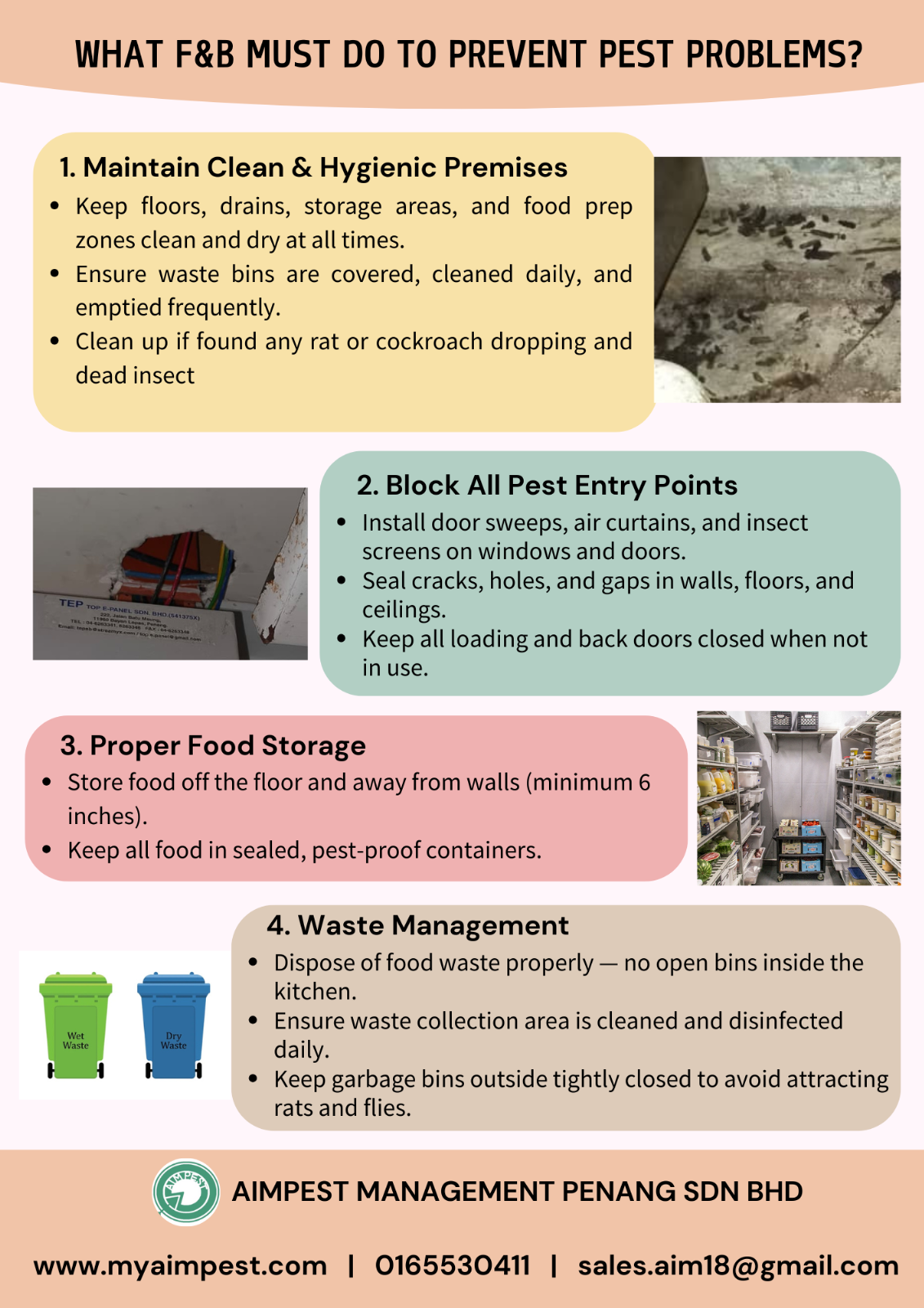 AIMPEST MANAGEMENT (PENANG) SDN BHD 已添加 新的照片 到相册 - What F&B Must Do To Prevent Pest Problem? . Scan and Whatsapp Me