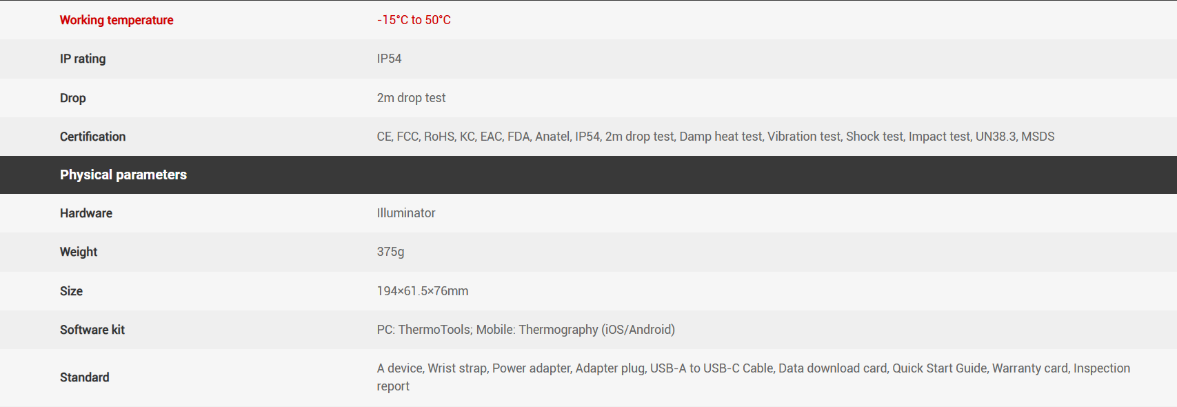 EasIR Series tool-like thermal camera provides two configuration options of 120x90 and 256x192 IR detectors. It adopts the new real-time IR-Perfclear technology to enhance the details and reduce noise of the image and present a clearer image in real time. Equipped with a series of professional functions such as 2MP visible light camera, video streaming and recording, WIFI, and OTA upgrade, etc., EasIR Series brings a clearer, more powerful and smoother work experience for users.