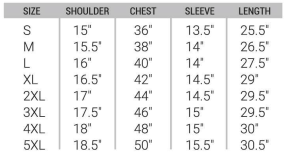 | Size | S (36'') ~ 5XL (50'') |