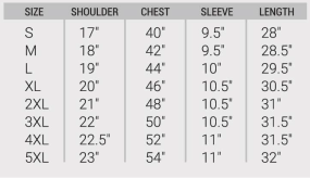 | Size | S (40'') ~ 5XL (54'') |