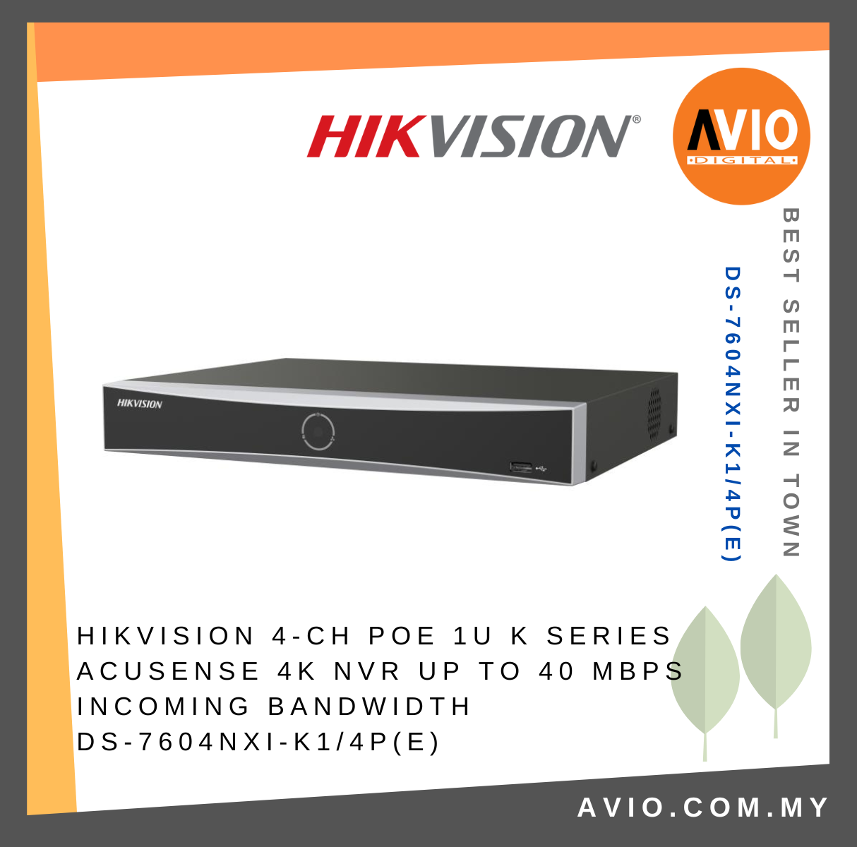柔佛,新山,柔佛再也,Taman Kempas Utama - HIKVISION 4-ch PoE 1U K Series AcuSense 4K NVR Up to 40 Mbps incoming bandwidth DS-7604NXI-K1/4P(E)