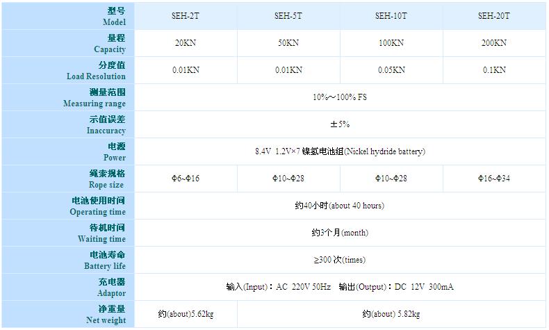 SEH Series Rope Tension Meter is a portable instrument, easily designed to test the tension of ropes. It is small but with multi-functions and high accuracy. It is handy to carry out and can be used in various ropes of tension test.