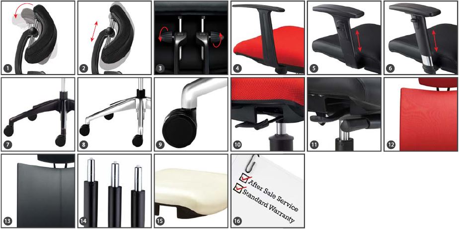 Point synchronized technology with multi-locking mechanism, not only allows separate tilting of backrest and seating in different angles, but more advance with multi angle locker helps user to control over maximum levels of tilting angles depending on preferred working postures, making every seating position a perfect balanced environment. (Pic. 11)
