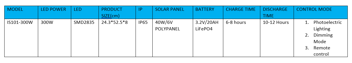 JLUX IS101 SOLAR LED BATTERY STREET LAMP 300W SMD2835 IP65 c/w REMOTECONTROL WARRANTY 14 MONTHS