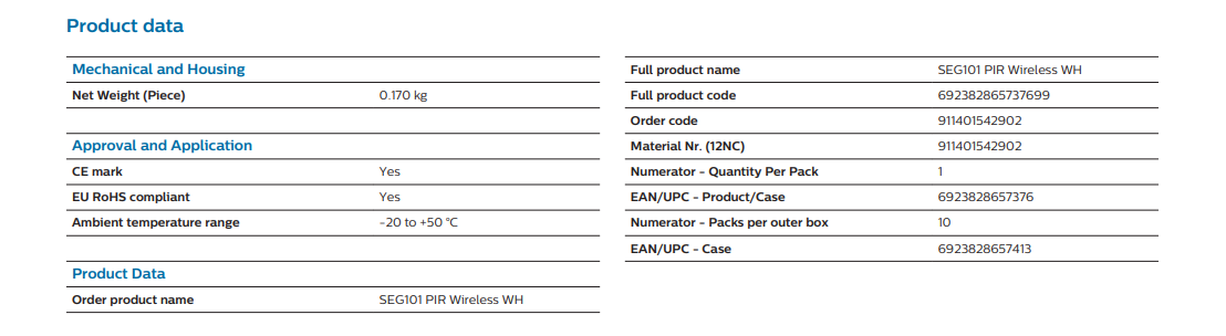 The PHILIPS SEG101 ECOSET BASIC SENSOR delivers the perfect balance of intelligent lighting control, durability, and reliability. With IP65 waterproof protection and a 50,000-hour lifespan, it ensures lasting performance while promoting energy efficiency and user convenience. It’s the ideal choice for businesses and homeowners looking to upgrade to smart, wireless lighting control backed by PHILIPS’ trusted quality.
