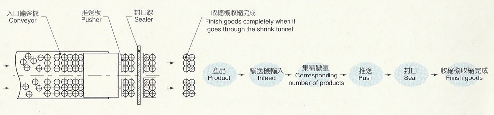 - It’s equipped with safety alarm devices including the sealing safety sensor, non-film sensor, upside-down cans sensor and film breakage sensor. There are photo eyes following up the register printed film.
