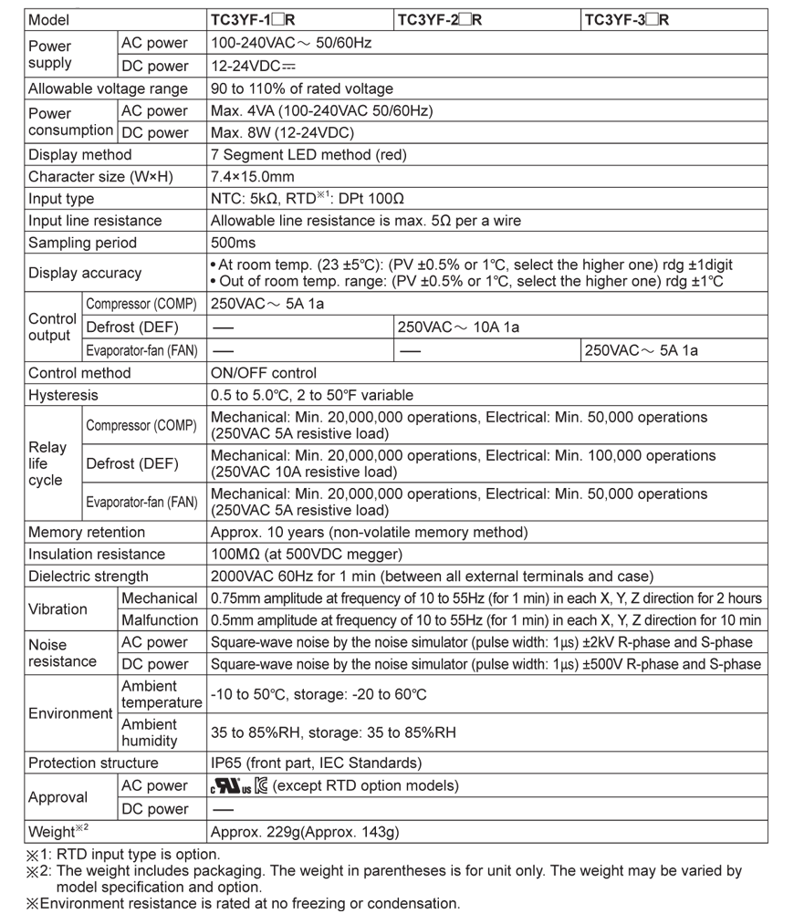 * Input specification - Basic specification: NTC (Thermistor), Option: RTD (DPt100Ω)