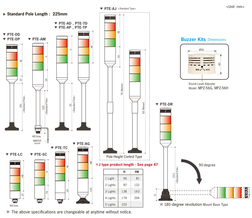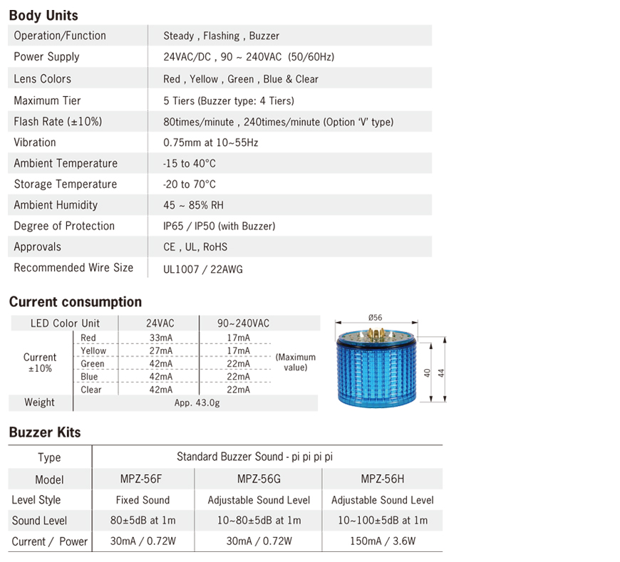 * Optional 80dB Buzzer (fixxed or adjustable volume)