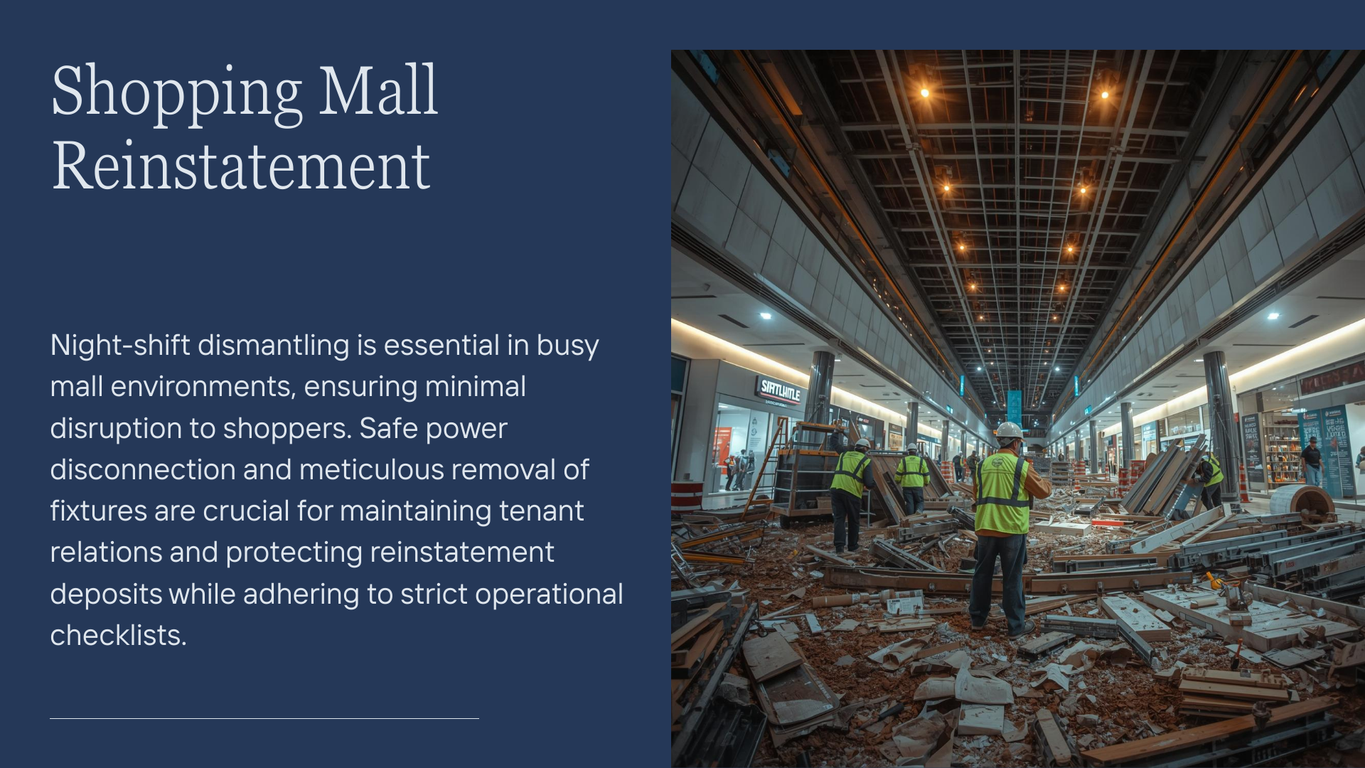 一个错误造成的损失可能超过整个项目预算——包括押金损失、工期延误、罚款、事故,甚至违反租赁协议。专业的拆除承包商不仅仅是拆掉东西