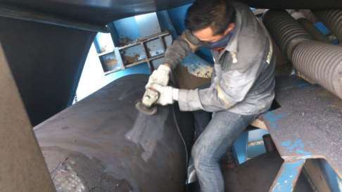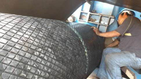 | On site Pulley Lagging - Surface Grinding | On site Pulley Lagging - Diamond Shape Lagging |