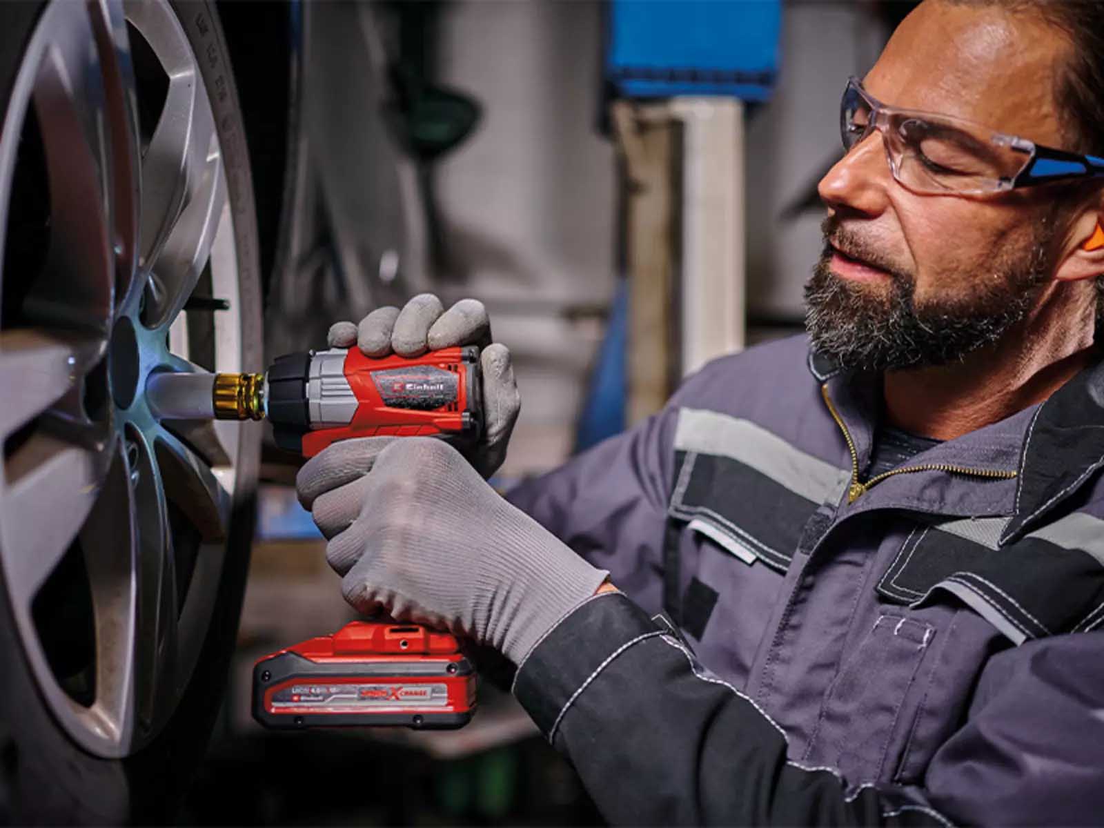 The Einhell cordless impact wrench TP-CW 18 Li BL Solo is the perfect addition when it comes to care and maintenance of your domestic vehicle fleet. Instead of investing a great deal of time and energy in changing tyres is spring and autumn, this practical helper loosens wheel nuts in no time at all. The powerful impact wrench provides a convenient alternative to tiring loosening by hand.