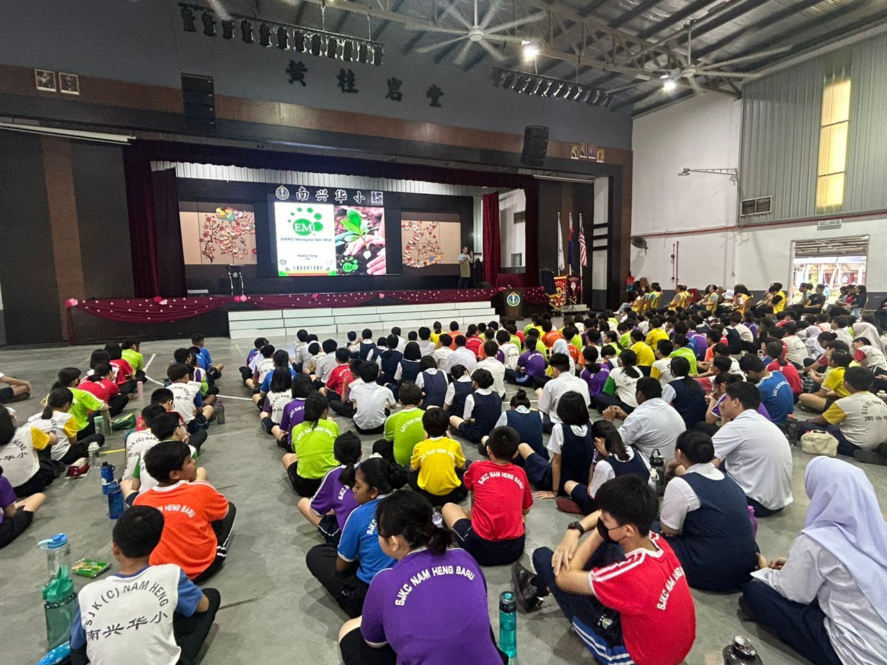 Mr Akata gave a presentation to 255 students from SJK (C) Nam Heng Baru about the applications and benefits of EM for our environment. The students had a great time learning how to make EM Mudballs during the hands-on workshop; a total of 1566 pcs of EM Mudballs were made during the event!