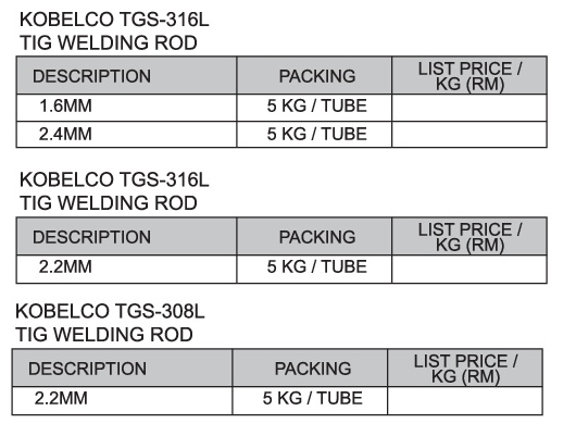 沙巴,哥打京那 - KOBELCO TGS-308L TIG WELDING ROD