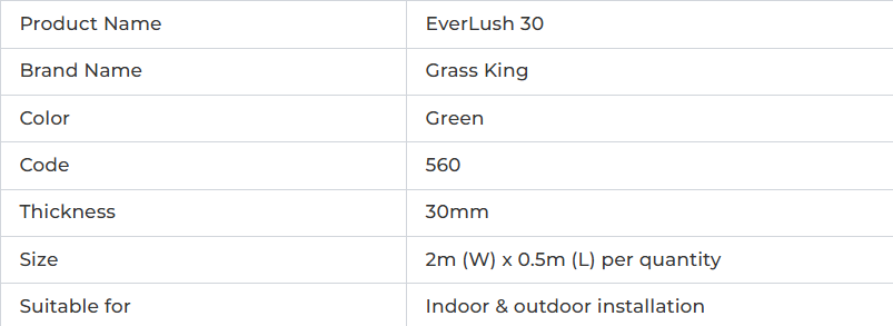 Whether you’re a homeowner seeking year-round greenery, a parent designing a safe play area, or a city dweller longing for a patch of nature, the Unique Artificial Turf Carpet [2M Width] Ever Lush 30 – 560 Grass King offers something for everyone. This versatile artificial grass, supplied by MAN KIAN HARDWARE & TRADING SDN BHD, instantly elevates any environment — from rooftops and balconies to retail displays and pool surrounds — bringing you the beauty of nature without the hassle.