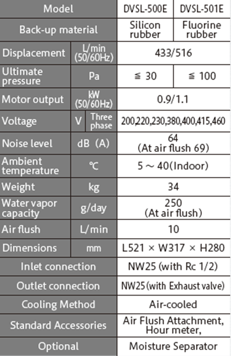 | DVSL-500E | Silicone tube | Clean, dry, and particle-free applications |