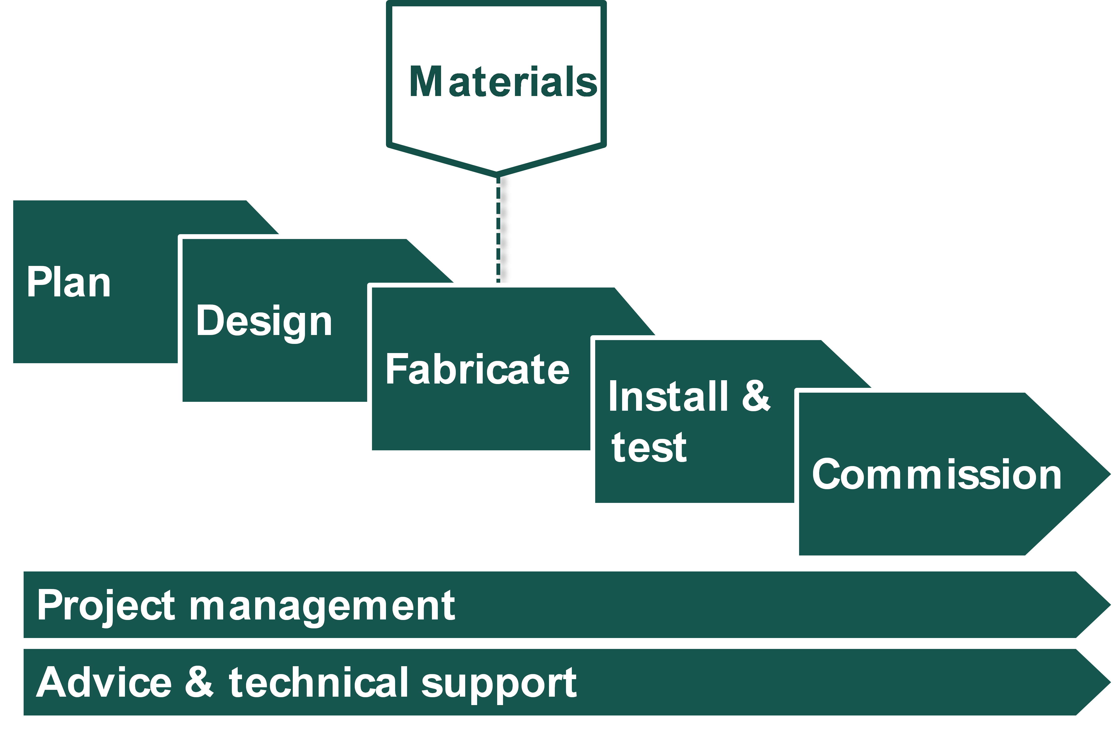 Our team of technical professionals and support staff will manage for you the process from the planning stage to the testing and commissioning of your line.