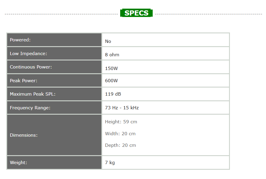 - 73 Hz - 15 kHz frequency range eliminates the need for subwoofers for moderate full-range music levels