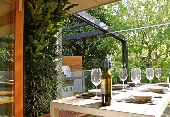 Build an organic wall made from natural materials that blend in with the environment to raise the energy in your backyard. You can do this by putting in place a tall wooden fence or vertical wall garden.