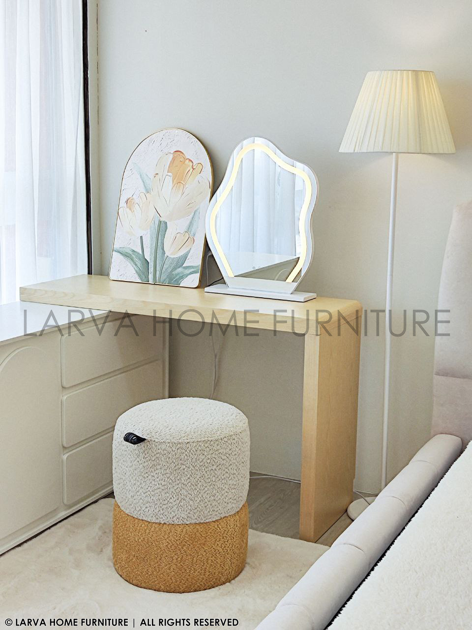 This Daisy Dressing Table features a clean, modern silhouette that instantly elevates any bedroom. Its spacious drawers provide practical storage for daily essentials, keeping your space neat and organized. The minimalist design blends easily with contemporary interiors. Smooth surfaces and soft tones create a calm, refined atmosphere. Perfect for both styling routines and decorative displays. A functional statement piece for everyday use.