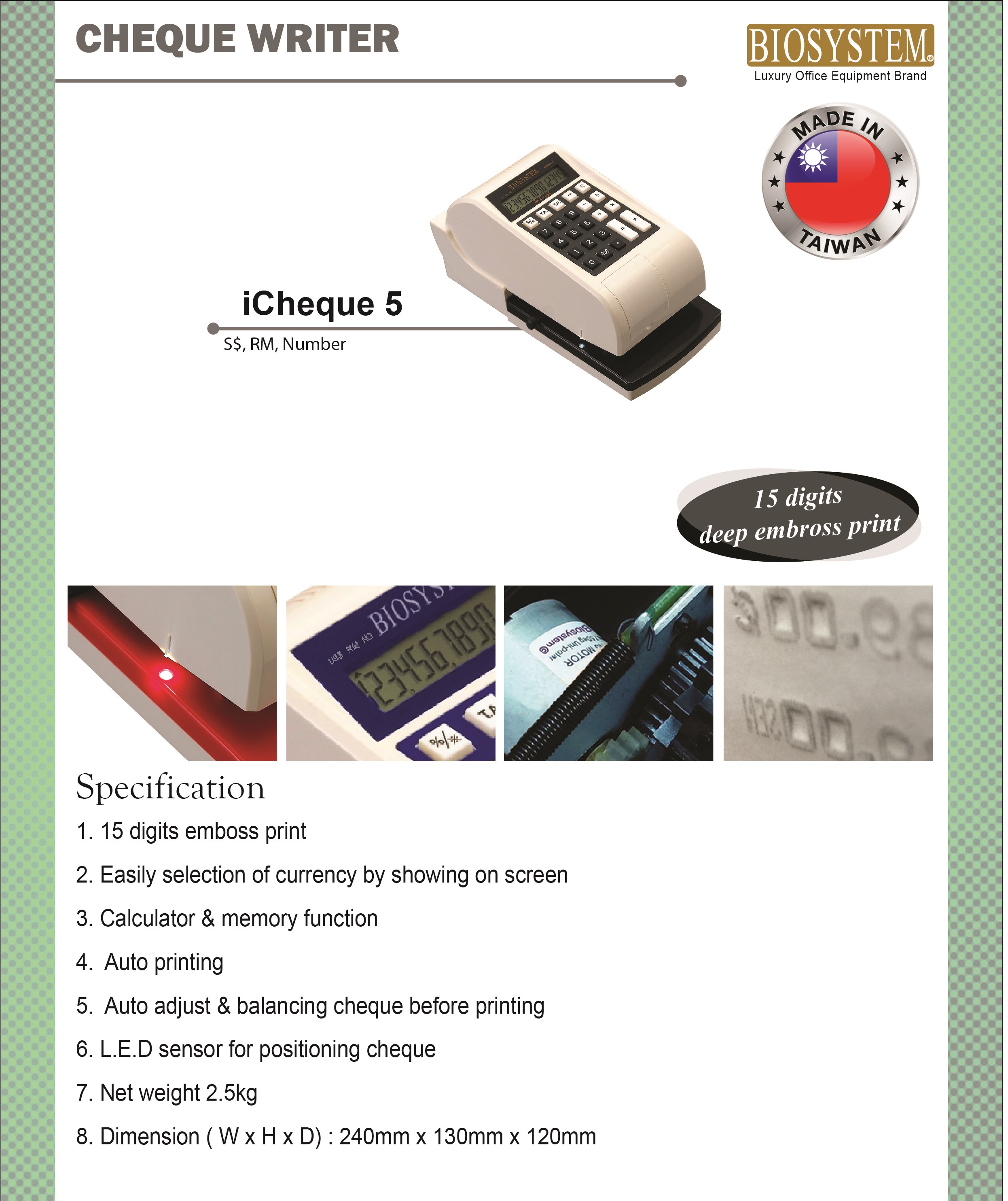 BIOSYSTEM iCheque5 Electronic Cheque Writer