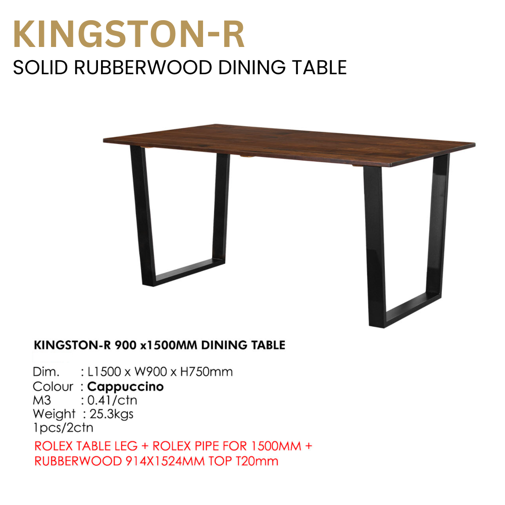 KINGSTON-R Dining Table | Solid RubberWood Dining Table