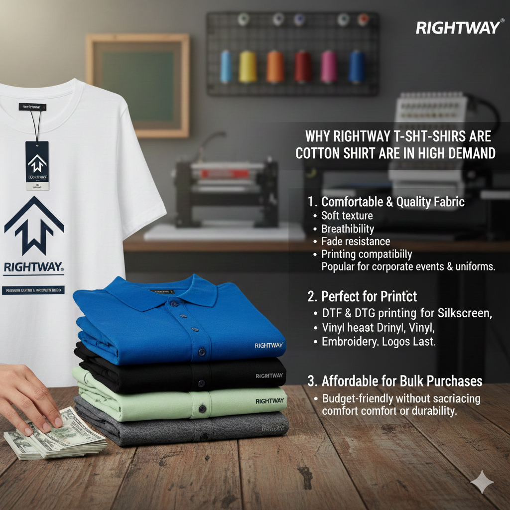 Whether you need plain t-shirts for printing or cotton shirts for corporate styling, Rightway offers a balance of affordability, long-lasting fabric quality, and consistent cutting.