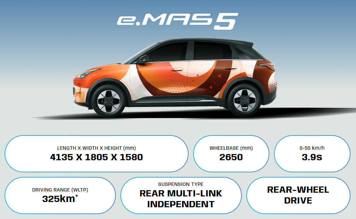 Developed by Pro-Net, a subsidiary of Proton, the B-segment electric hatchback aims to make EV ownership accessible to more Malaysians. With a tentative price range of RM60,000 to RM80,000, the e.MAS 5 offers an attractive combination of modern design, advanced technology, and everyday practicality.