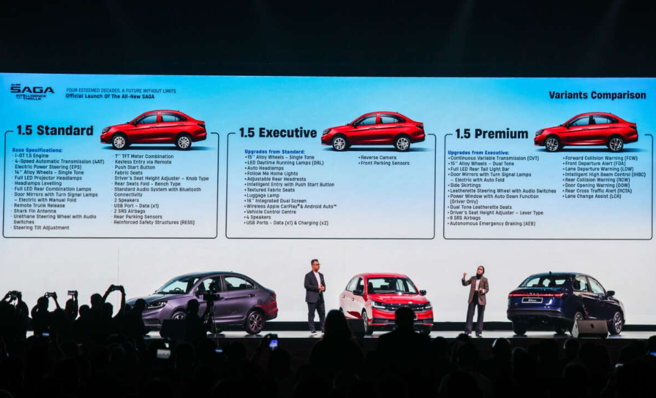 Powering the new Saga is a 1.5L iGT naturally aspirated engine delivering 120 hp and 150 Nm, representing a significant upgrade from before. The Standard and Executive variants are paired with a 4-speed automatic gearbox (4AT), while the Premium variant is exclusively equipped with a CVT, which also offers the best fuel economy—achieving 4.9 L/100 km, making it the most efficient Saga to date.