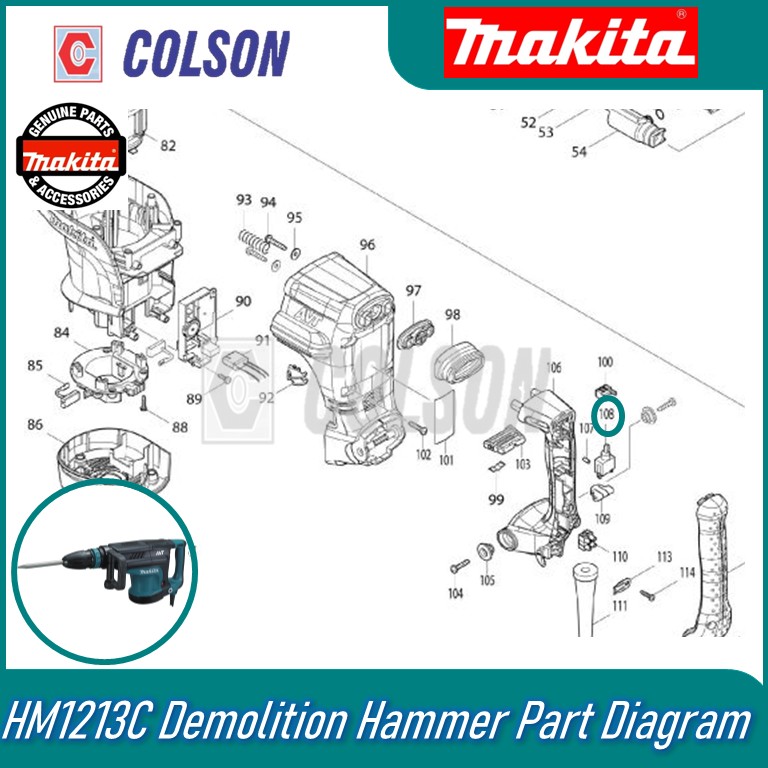 MAKITA 651423-1 HM1213C Demolition Hammer Switch