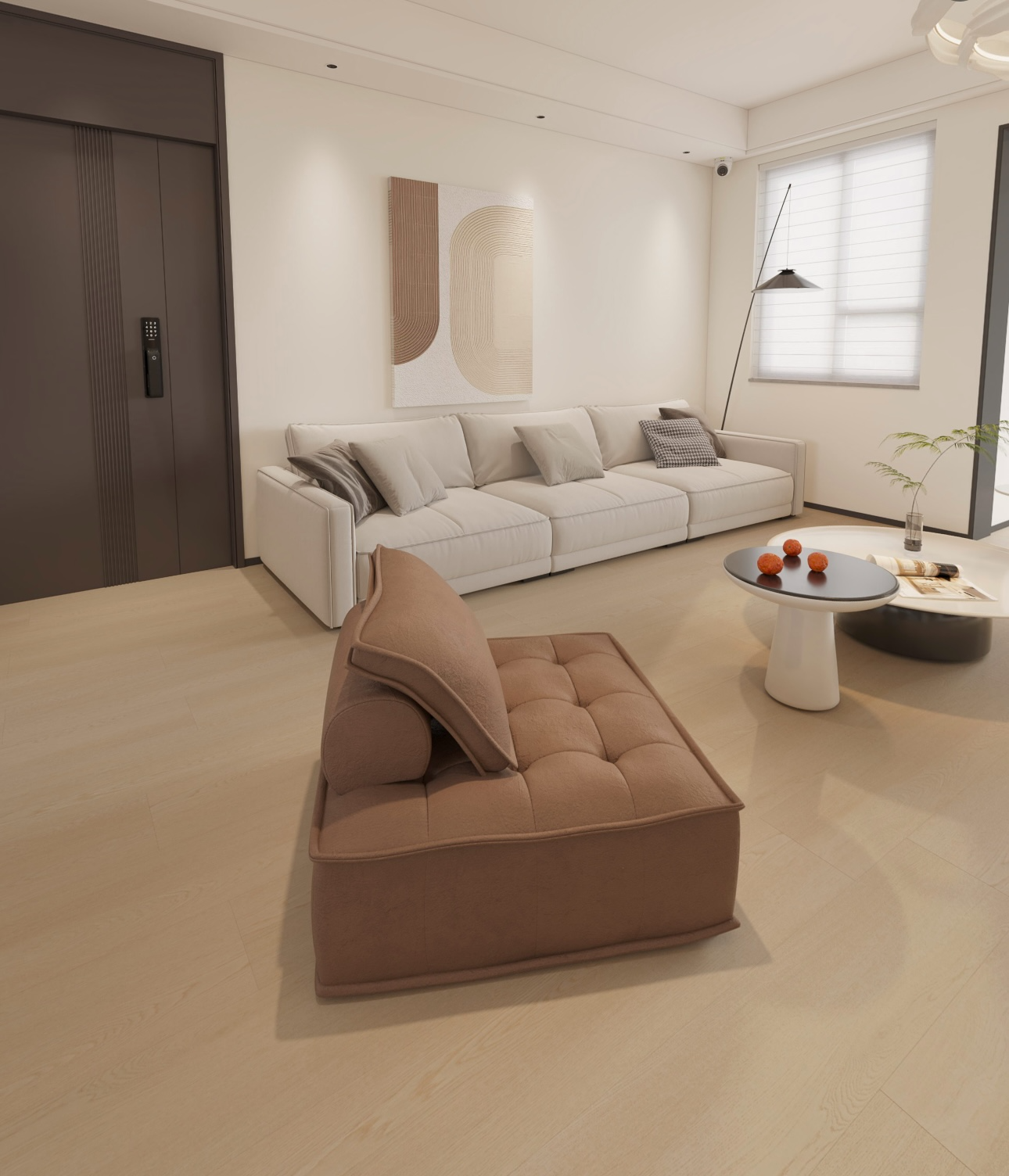 We created the SPC Elite Series to stand out for its unmatched combination of aesthetics and resilience. Each 9-inch wide plank delivers a visually expansive effect, making rooms look larger and more cohesive. Inspired by natural wood but engineered with a 6mm thick SPC structure, it resists warping, dents, and water damage — ensuring a premium look that lasts for years.