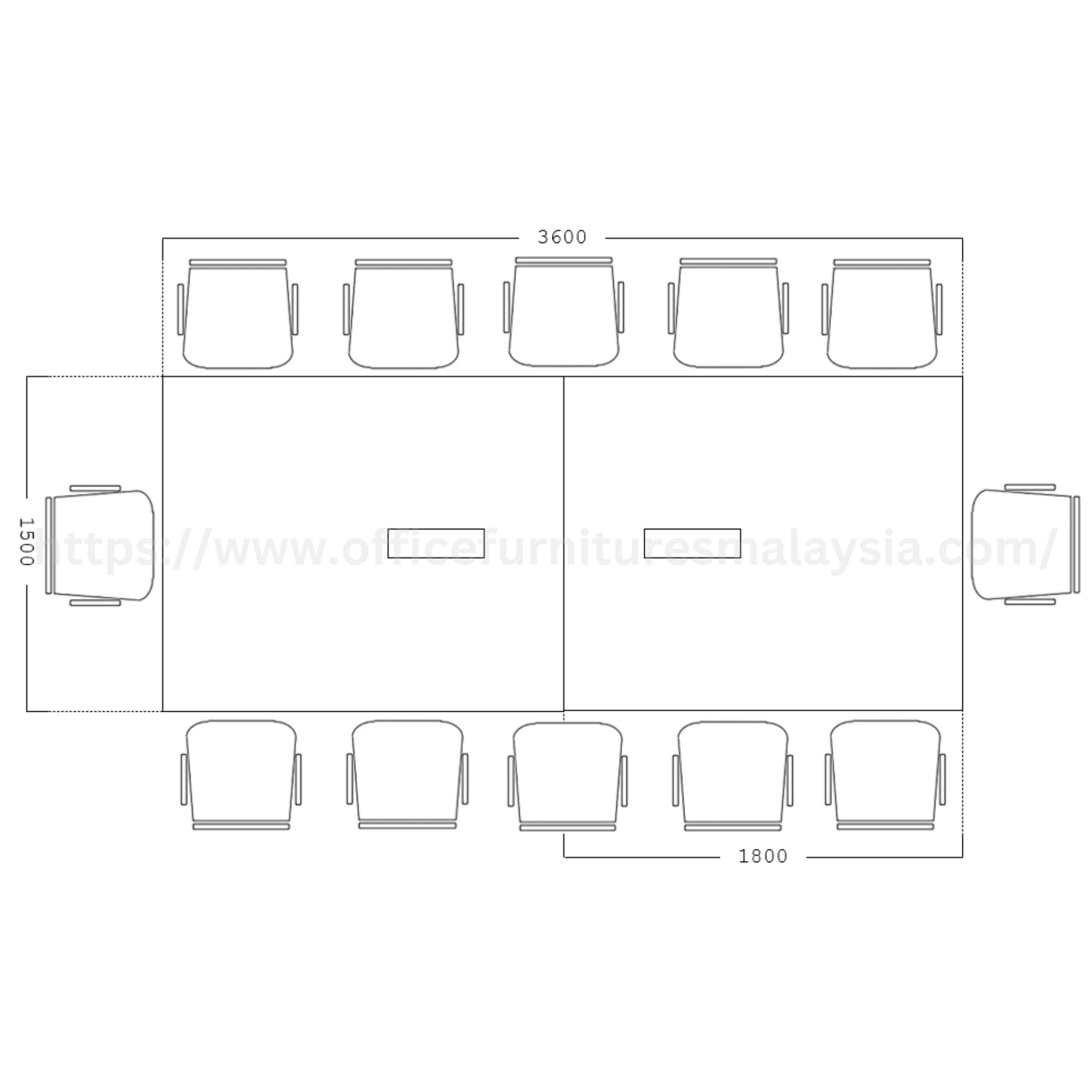 - 1 x Rectangular Meeting Table Size : W 3600 mm x D 1500 mm x H 750 mm