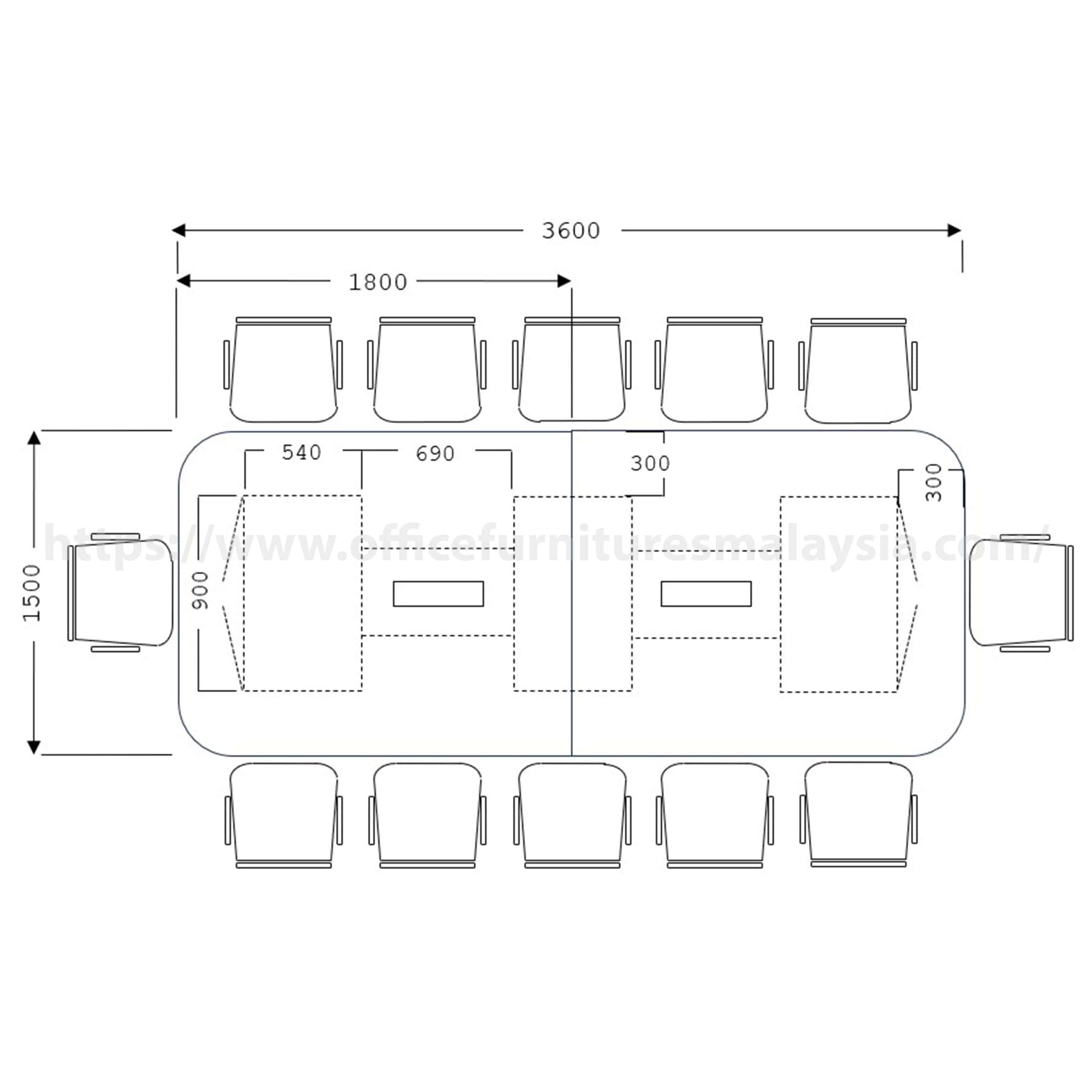 - 1 x Meeting Table Size: W 3600 mm x D 1500 mm x H 750 mm