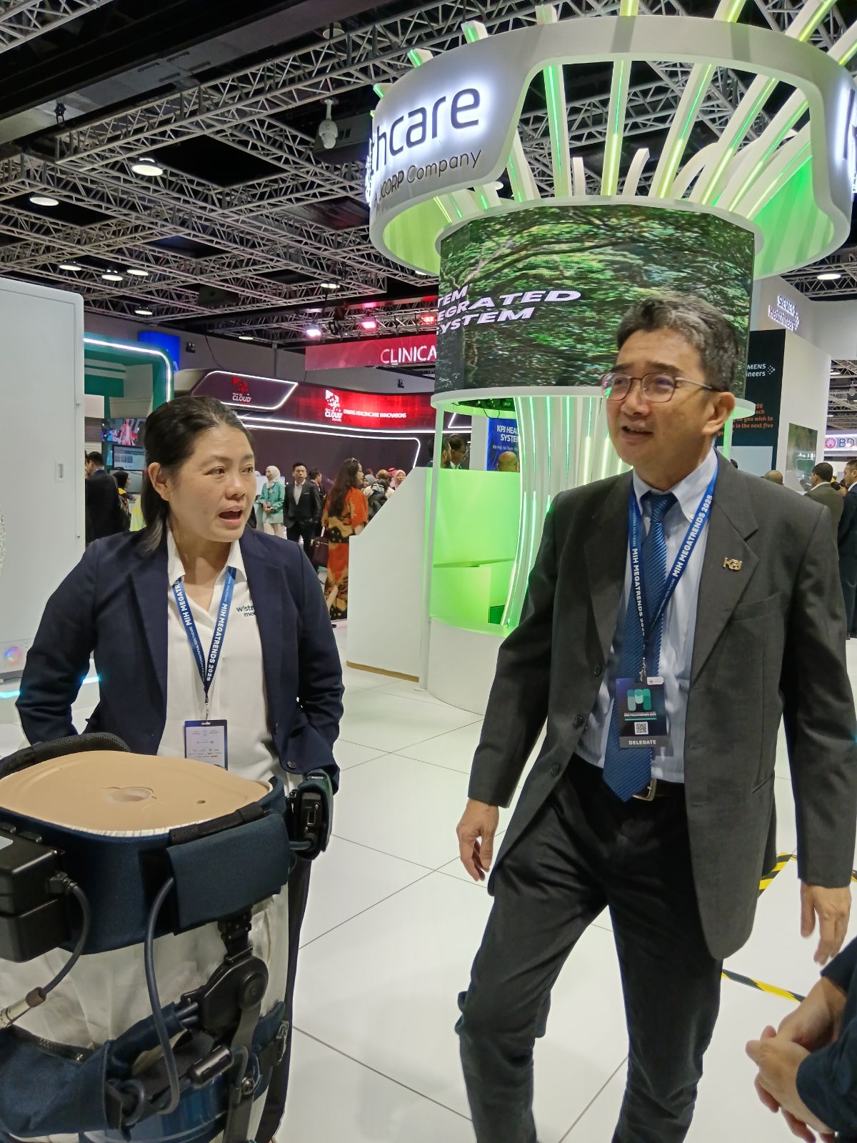 At the KPJ Healthcare booth, attendees experienced firsthand the transformative potential of next-generation solutions. A key highlight was the Keego Exoskeleton, a wearable assistive device designed to enhance mobility and rehabilitation outcomes. Its ergonomic design and responsive support system drew strong interest from healthcare professionals and tech enthusiasts alike.