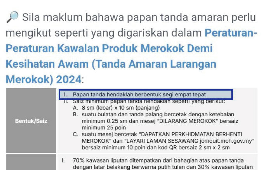 15x18cm (No Smoking Saiz Kenderaan Awam)