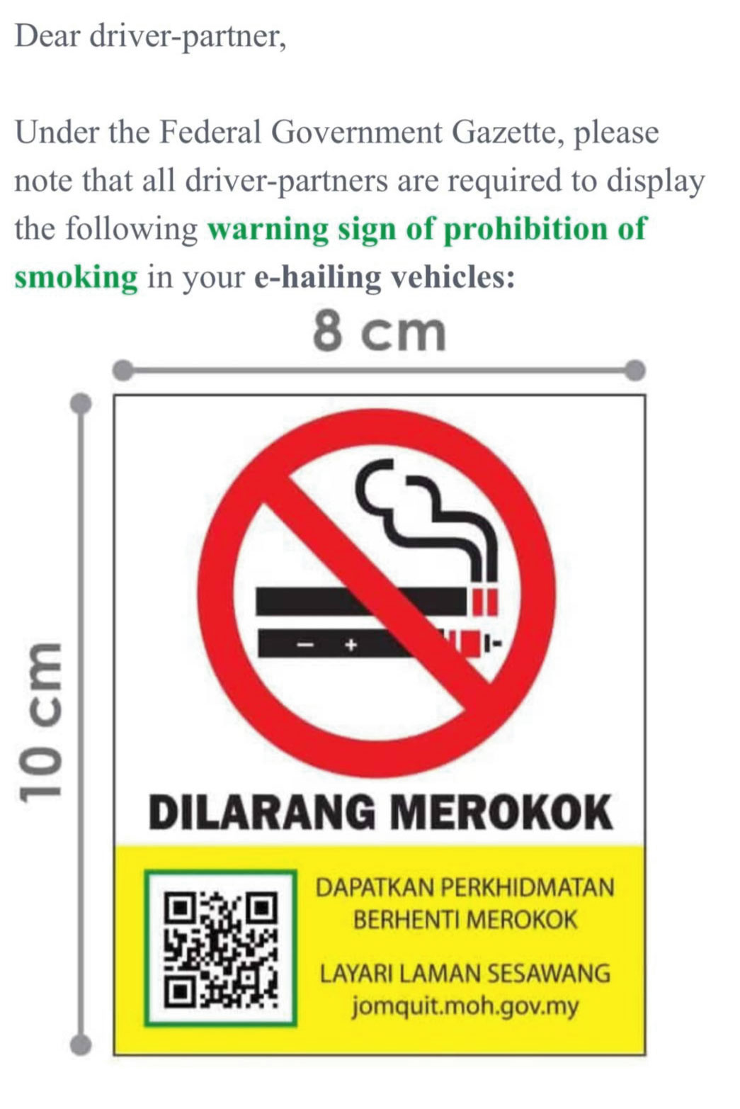 8x10cm (No smoking Saiz E-hailing, Teksi dan kereta sewa)