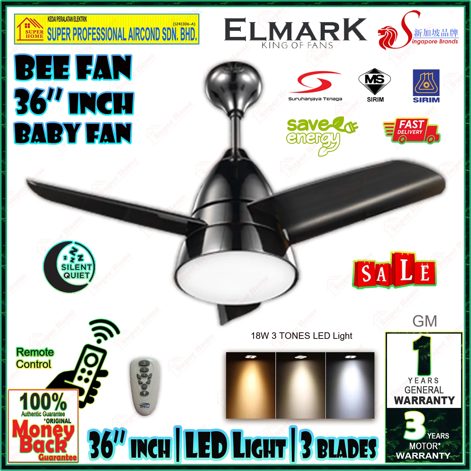 - 18W LED light (3 colour)